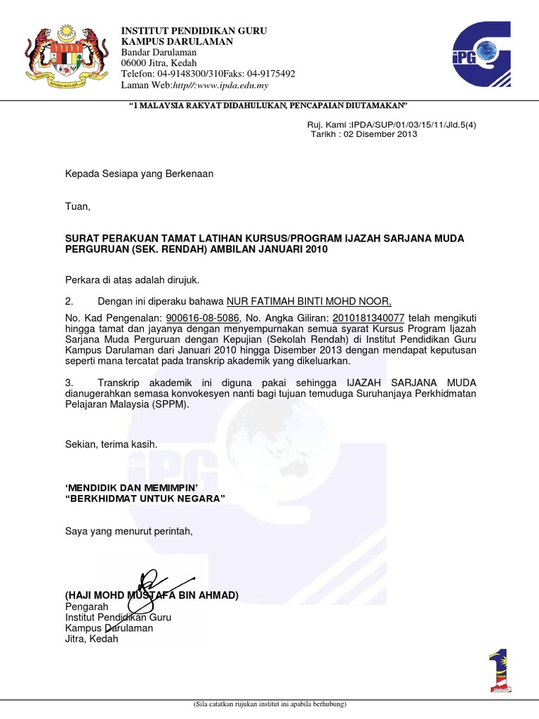 Yang benar _____ sepenuh masa separuh masa ditandatangani disahkan oleh pusat pengajian pusat pentadbiran kerajaan persekutuan jalan p56 presint 5 tuan pengesahan pengajian pelajar di pusat pengajian up. Surat tawaran uitm pdf. Peraturan menteri pendidikan dan kebudayaan republik indonesia nomor 29 tahun 2014 tentang pengesahan fotokopi ijazah surat tanda tamat belajar surat keterangan pengganti ijazah surat tanda tamat belajar dan penerbitan surat keterangan pengganti ijazah surat tanda tamat belajar jenjang.
